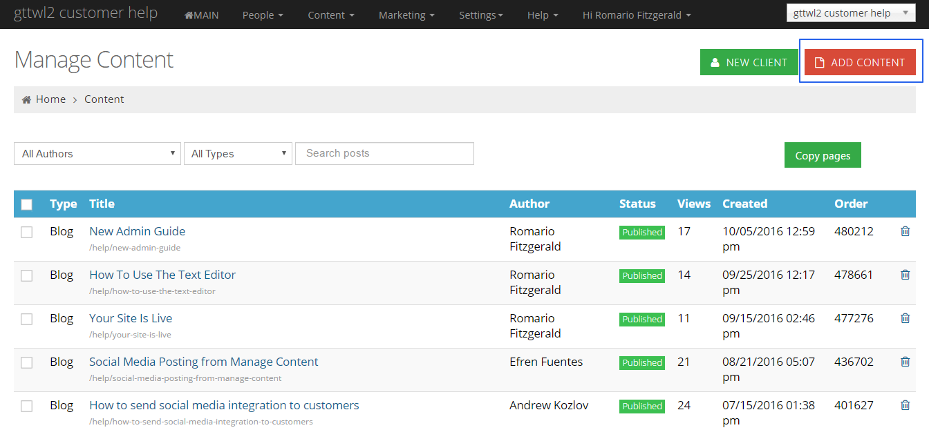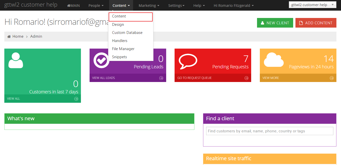 1. Select "Content" within the drop-down menu or select "Add Content" on the right side of the page (This will take you to step 3).