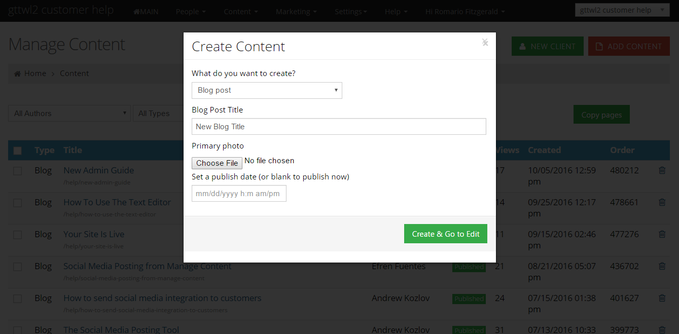 5. Click "Create & Go to Edit" to proceed to add the body of the content.