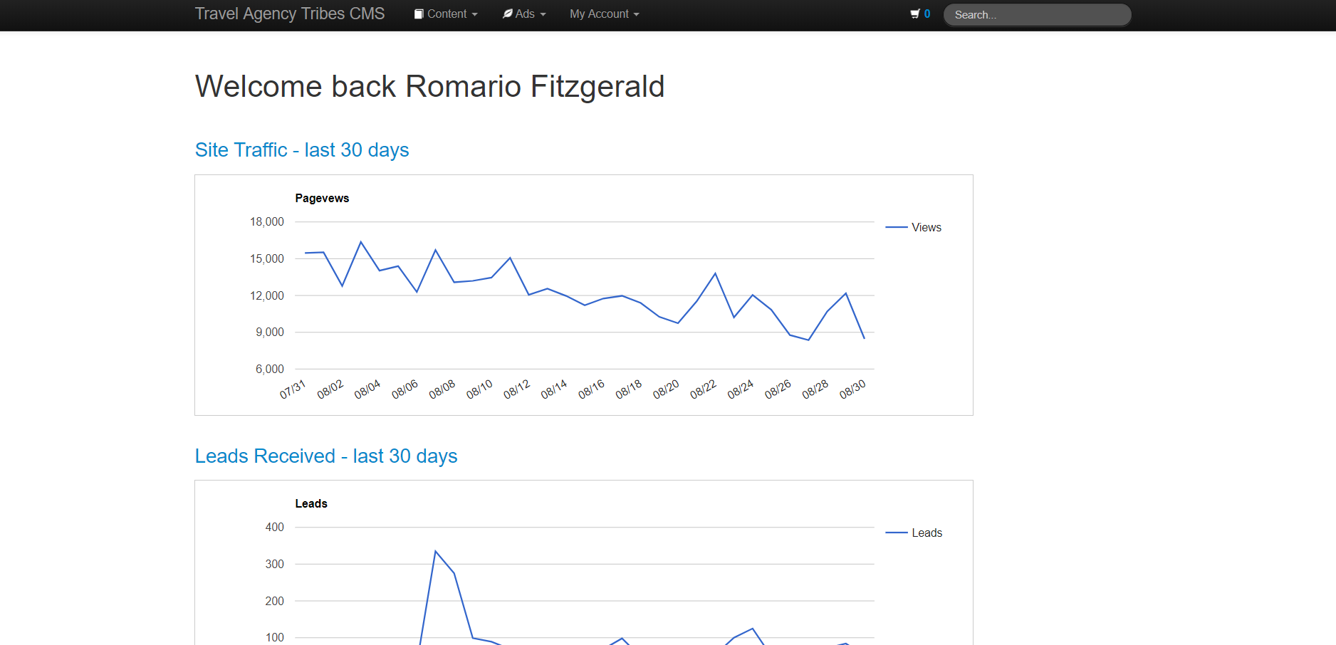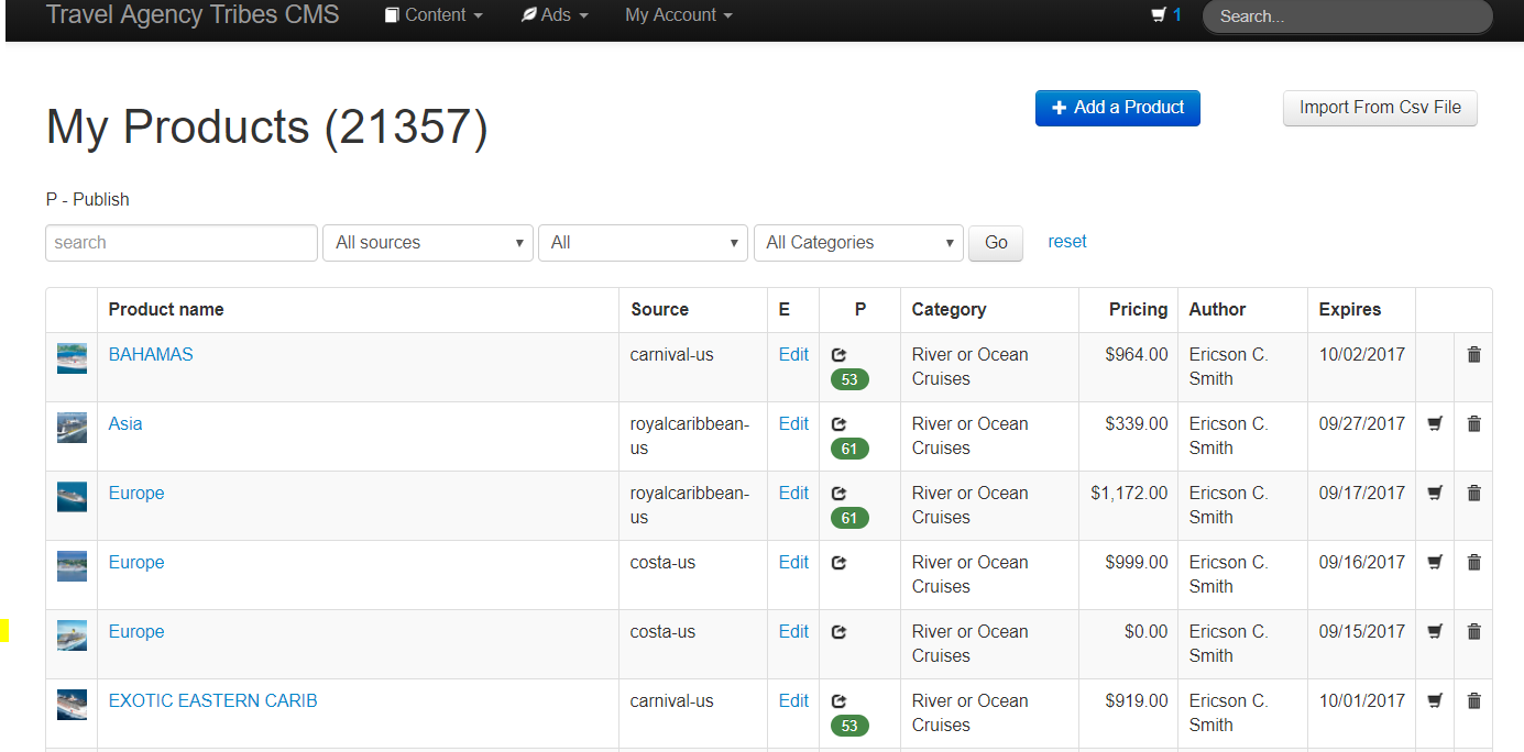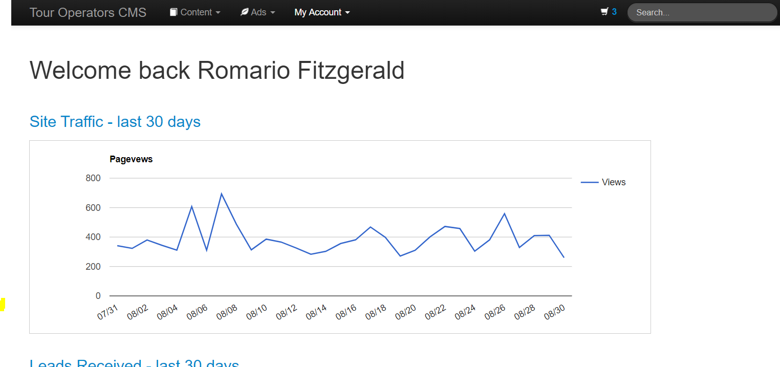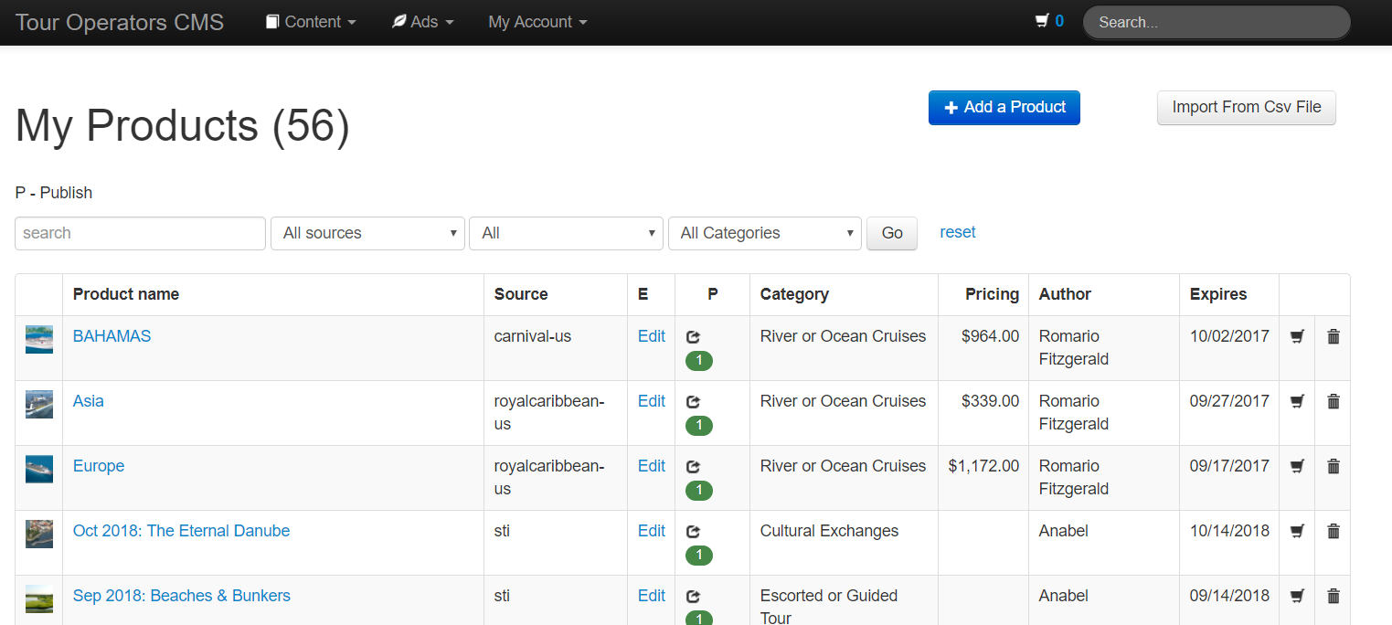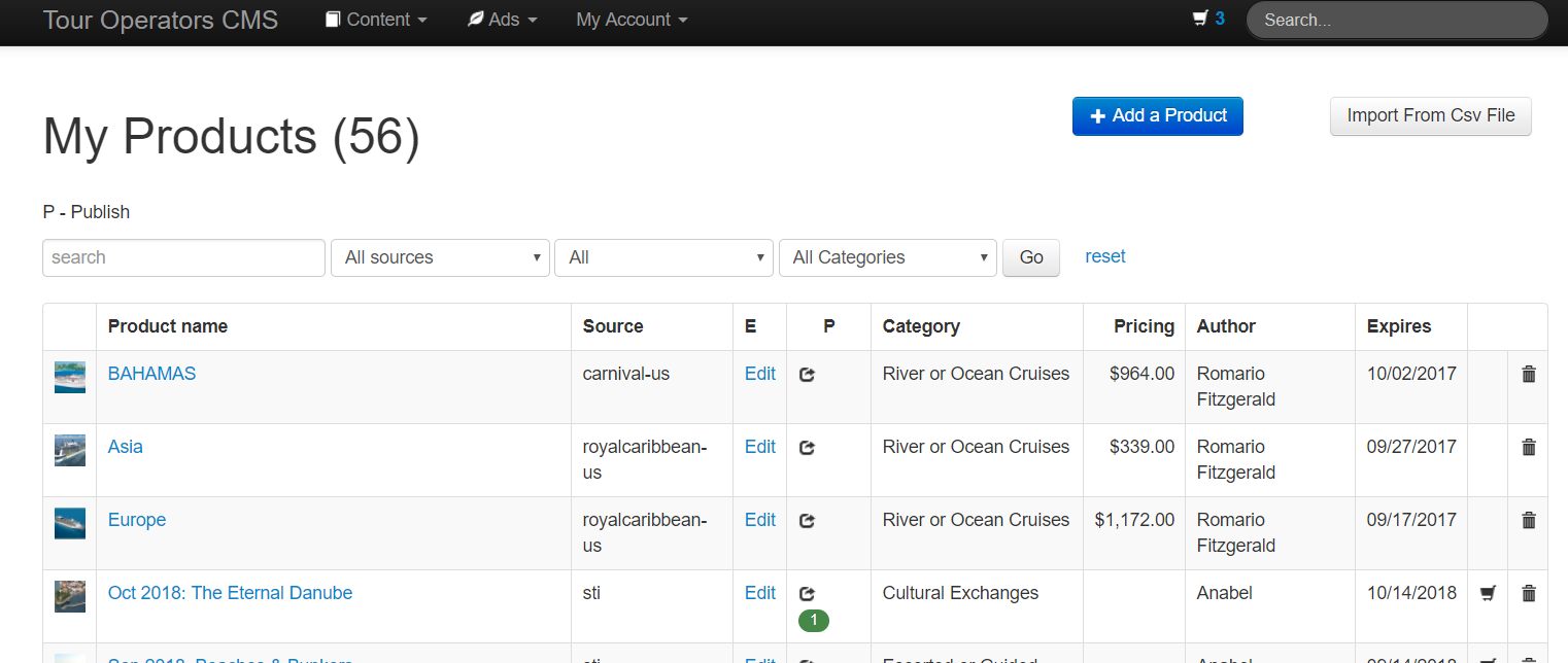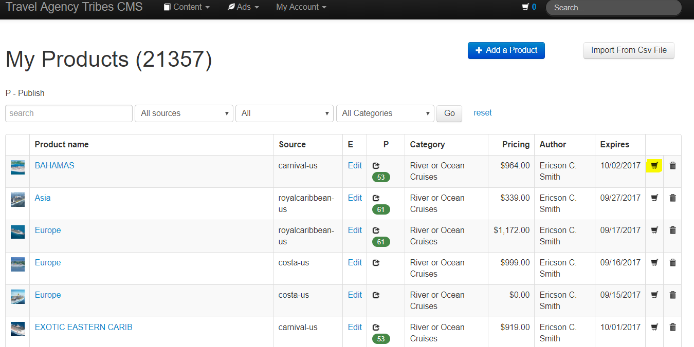 5. Go to the CMS you selected to copy to posts to and click the cart button in the top right hand corner next to the search bar.
