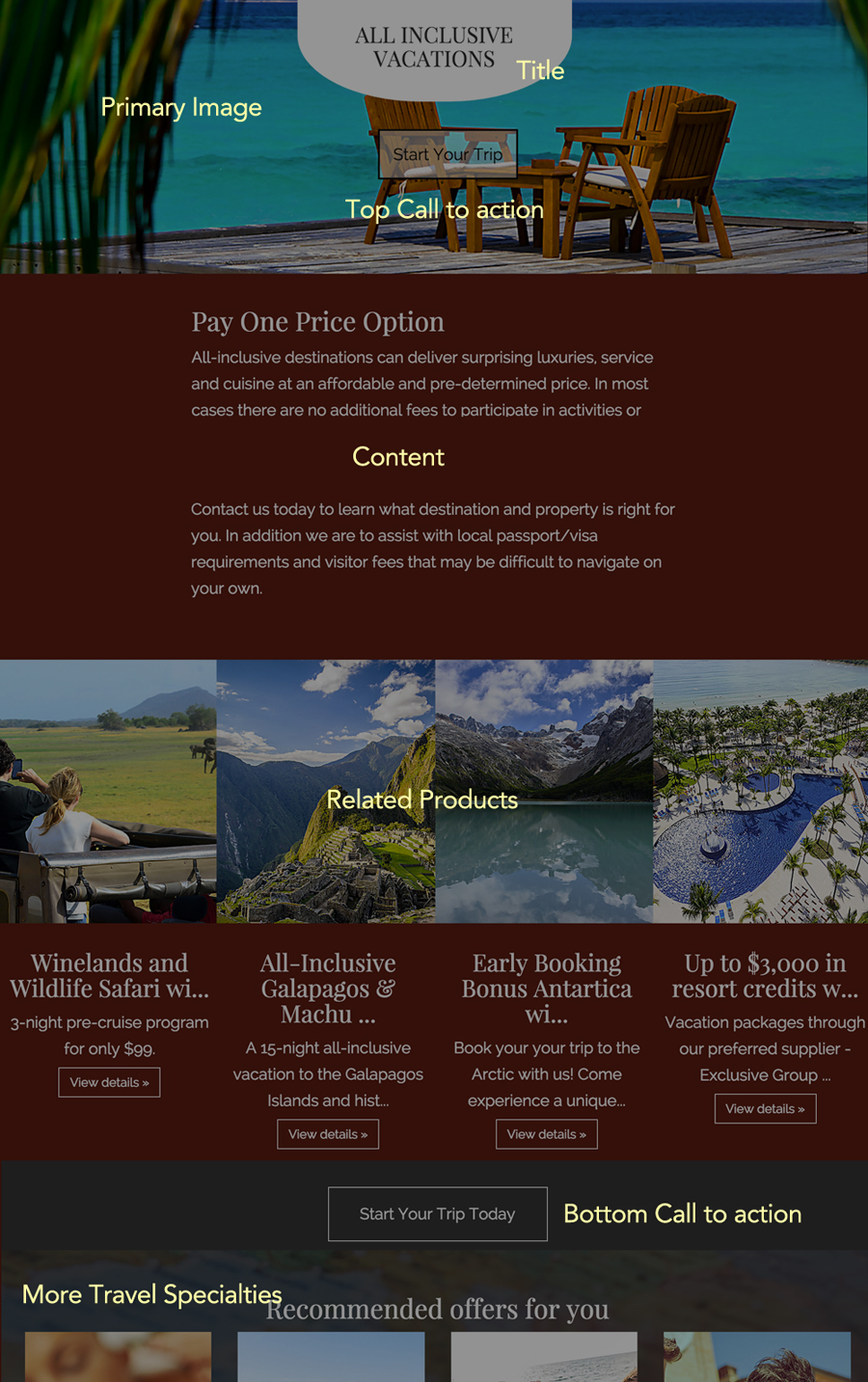 The following image shows you the structure of a Landing Page (https://travelsavers3.gttwl2.com/all-inclusive-vacations):